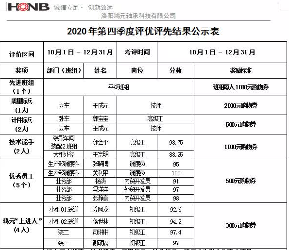 洛陽鴻元軸承召開2020年第三季度評優(yōu)評先表彰大會