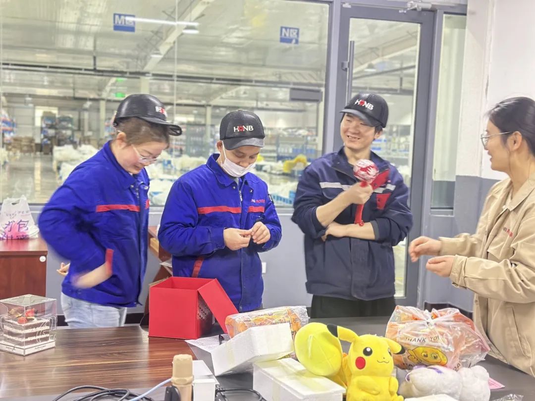 人資小伙伴們?cè)缭鐐浜玫案馀c禮物。松軟蛋糕上,象征希望的蠟燭輕輕搖曳,包裝精美的禮物滿含心意,每一件都精心挑選。它們承載著溫暖關(guān)懷,讓大家在鴻元感受家的溫馨。